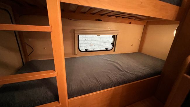 -3 ambientes: cama matrimonio, 2 literas y comedor convertible en cama doble